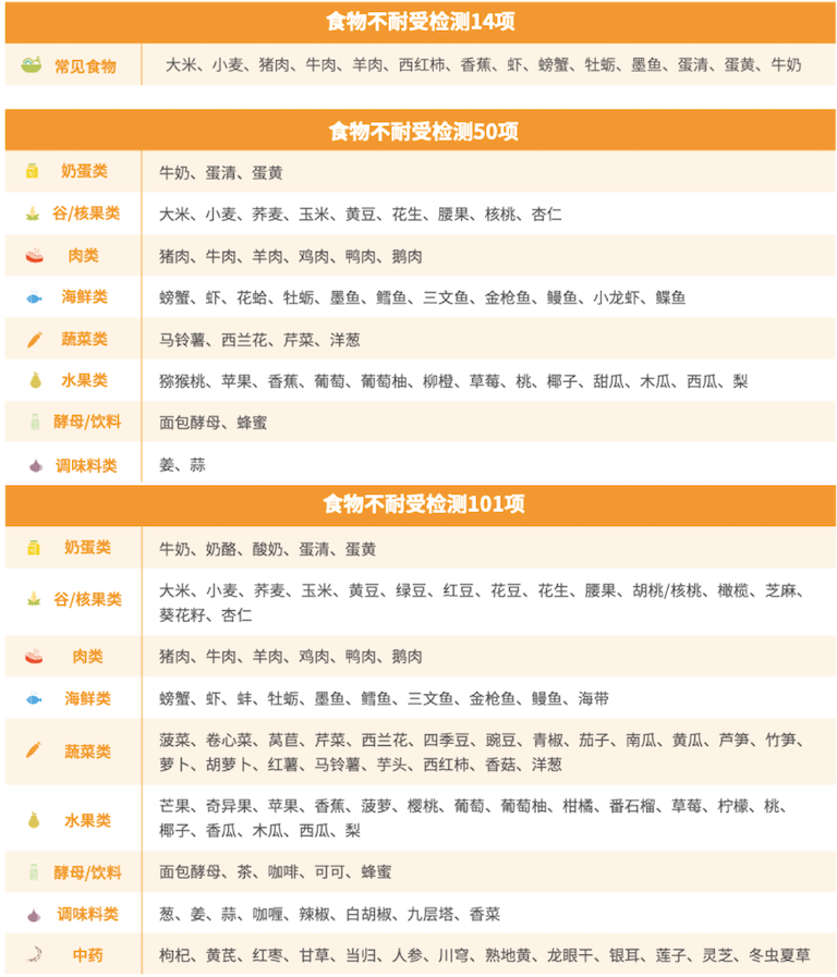 ? ? ? 對(duì)包括奶蛋類、海鮮、蔬菜、水果、谷物、酵母/飲料、調(diào)味品、中藥在內(nèi)的中國人食譜中經(jīng)常出現(xiàn)的食物進(jìn)行IgG抗體檢測(cè)(食物不耐受檢測(cè)),并依據(jù)檢測(cè)結(jié)果,為受檢者制定最適合他/她的飲食方案,依據(jù)方案調(diào)整飲食習(xí)慣,便能在3~6個(gè)月內(nèi)有效改善甚至消除慢性疾病癥狀,從而提高受檢者的生活質(zhì)量。?