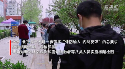 記者了解到,為進(jìn)一步落實(shí)“外防輸入、內(nèi)防反彈”的總要求,推進(jìn)核酸檢測應(yīng)檢盡檢,北京疫情防控領(lǐng)導(dǎo)小組明確對八類人員實(shí)施核酸檢測。伴隨復(fù)工復(fù)產(chǎn)的持續(xù)推進(jìn)和入住酒店的相關(guān)要求,越來越多的人面臨核酸檢測需要。