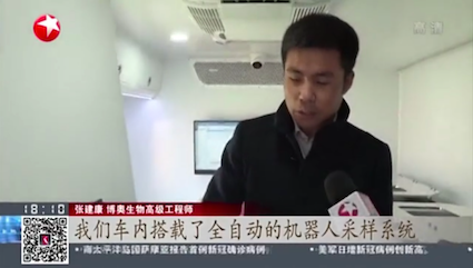 全集成新冠檢測移動實驗室接通220V民用電即可正常工作,同時它自身配備發(fā)電系統(tǒng),可以在各種苛刻環(huán)境下使用。采樣可以通過機械手完成,從采樣、病毒滅活、樣品核酸分析都是無需人工干預(yù)自動完成的。操作人員只需要做一個動作,就是用移液槍將滅活后試管內(nèi)的液體樣本加入到芯片里封存,放入全自動微流控核酸分析儀中進行檢測,45分鐘后車內(nèi)的顯示屏上就會自動顯示結(jié)果。