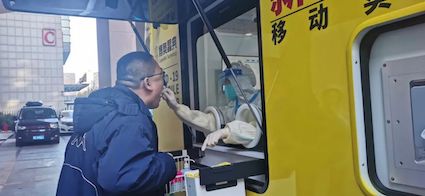 4日上午,來(lái)自全國(guó)的參會(huì)代表陸續(xù)抵達(dá)會(huì)場(chǎng)報(bào)到,會(huì)場(chǎng)外停放的全集成新冠病毒核酸檢測(cè)移動(dòng)實(shí)驗(yàn)室共配備兩條人工采樣窗口和一條智能機(jī)器人采樣窗口同時(shí)進(jìn)行采樣。