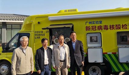 1月31日,由鐘南山院士、徐濤院士領(lǐng)銜的“廣州市實(shí)驗(yàn)室助力國(guó)家基層疫情防控萬(wàn)里行”活動(dòng)在廣州國(guó)際生物島啟動(dòng),國(guó)家科技部、哈爾濱醫(yī)科大學(xué)附屬第一醫(yī)院、河北醫(yī)科大學(xué)第二醫(yī)院的代表通過(guò)視頻線上參加活動(dòng),廣州市委常委、黃埔區(qū)委廣州開(kāi)發(fā)區(qū)黨工委書(shū)記周亞偉,廣州市人民政府副市長(zhǎng)王東等省市有關(guān)領(lǐng)導(dǎo)出席現(xiàn)場(chǎng)活動(dòng)。博奧晶典全集成新冠病毒核酸檢測(cè)移動(dòng)實(shí)驗(yàn)室亮相此次活動(dòng),作為廣州實(shí)驗(yàn)室的重要組成部分,為基層提供快速、準(zhǔn)確、靈活的即時(shí)檢測(cè)。