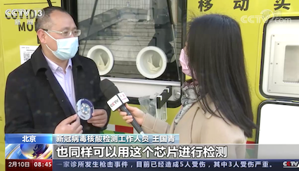 ? ? ? “這個芯片相當(dāng)于一個微型的實驗室它集成了核酸的提取、核酸的擴(kuò)增檢測,在芯片里面全自動完成,45分鐘以后,我們就可以在系統(tǒng)里看到結(jié)果?!北本┎W晶典生物技術(shù)有限公司副總裁王國青表示。信息結(jié)果將同步推送到健康寶,除了人的樣本以外,環(huán)境樣本也可以用全集成芯片進(jìn)行檢測。