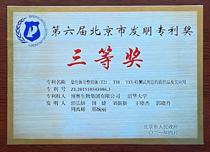 4月20日上午,京津冀促進(jìn)知識產(chǎn)權(quán)運(yùn)用工作會暨北京市發(fā)明專利獎頒獎大會在京舉行,博奧生物集團(tuán)聯(lián)合清華大學(xué)的“染色體非整倍體(T21、T18、T13)檢測試劑盒的質(zhì)控品及其應(yīng)用”發(fā)明專利喜獲三等獎,彰顯了博奧生物在無創(chuàng)產(chǎn)前基因檢測技術(shù)上的先進(jìn)優(yōu)勢。