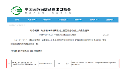 近日,作為博奧晶典抗疫明星產(chǎn)品,新型冠狀病毒2019-nCoV核酸檢測試劑盒(全集成碟式芯片法)英文名稱:SARS-CoV-2 Nucleic Acid Detection Kit (Integrated Isothermal Amplification Chip Method)入選商務(wù)部出口白名單。同期,博奧晶典全集成新冠病毒核酸檢測芯片也在中國醫(yī)藥保健品進(jìn)出口商會官網(wǎng)公布的《取得國外標(biāo)準(zhǔn)認(rèn)證或注冊的醫(yī)療物資生產(chǎn)企業(yè)清單》(俗稱白名單)中亮相。在全球疫情持續(xù)重壓、變異新毒株奧密克戎(Omicron)極速蔓延的當(dāng)下,全集成新冠病毒核酸檢測芯片的加入,有效支持了國際社會共同應(yīng)對全球公共危機,博奧晶典也將持續(xù)助力全球新冠肺炎疫情防控工作,為公眾健康保駕護航。