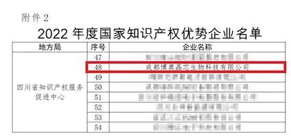 近日,國家知識(shí)產(chǎn)權(quán)局發(fā)布了“2022年度國家知識(shí)產(chǎn)權(quán)優(yōu)勢(shì)企業(yè)”評(píng)定結(jié)果公示。經(jīng)企業(yè)測(cè)評(píng)、推薦上報(bào)、省市專家審核確認(rèn)等嚴(yán)格篩選程序,博奧晶典旗下成都博奧晶芯生物科技有限公司(以下簡稱:博奧晶芯)憑借在知識(shí)產(chǎn)權(quán)創(chuàng)造、運(yùn)用、保護(hù)和管理方面的優(yōu)勢(shì),榮獲“2022年度國家知識(shí)產(chǎn)權(quán)優(yōu)勢(shì)企業(yè)”稱號(hào)。