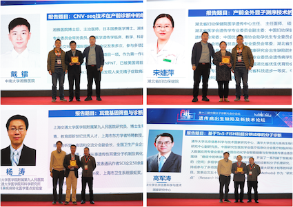 本屆遺傳病出生缺陷及新技術(shù)論壇特邀首都醫(yī)科大學(xué)附屬北京婦產(chǎn)醫(yī)院產(chǎn)前診斷中心實驗室負(fù)責(zé)人、副教授王一鵬,昆明醫(yī)科大學(xué)第一附屬醫(yī)院副主任技師張艷亮,成都市婦女兒童中心醫(yī)院產(chǎn)前診斷科副教授劉青松和昆明醫(yī)科大學(xué)第一附屬醫(yī)院產(chǎn)診中心實驗室負(fù)責(zé)人王玨作為議題主席對專家們的報告做精彩點評并頒發(fā)紀(jì)念獎牌。