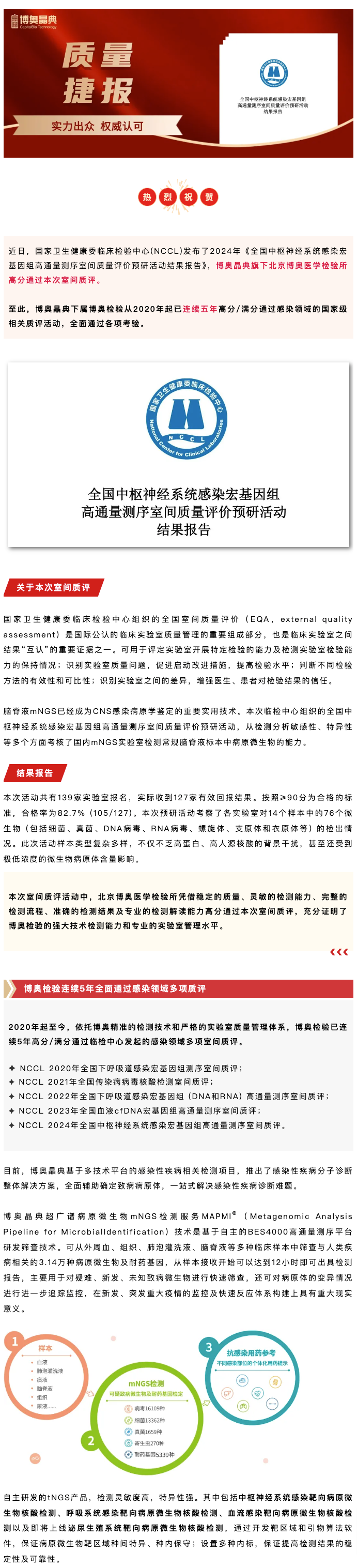 捷報(bào)丨全國(guó)中樞神經(jīng)系統(tǒng)感染mNGS室間質(zhì)評(píng)結(jié)果發(fā)布,博奧檢驗(yàn)連續(xù)5年全面通過(guò)感染領(lǐng)域多項(xiàng)質(zhì)評(píng)