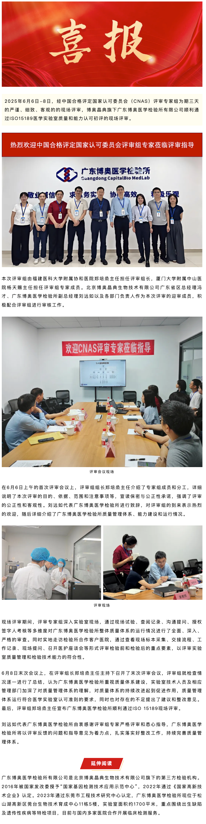 喜報丨博奧晶典旗下廣東博奧醫(yī)學(xué)檢驗所順利通過ISO15189醫(yī)學(xué)實驗室現(xiàn)場評審