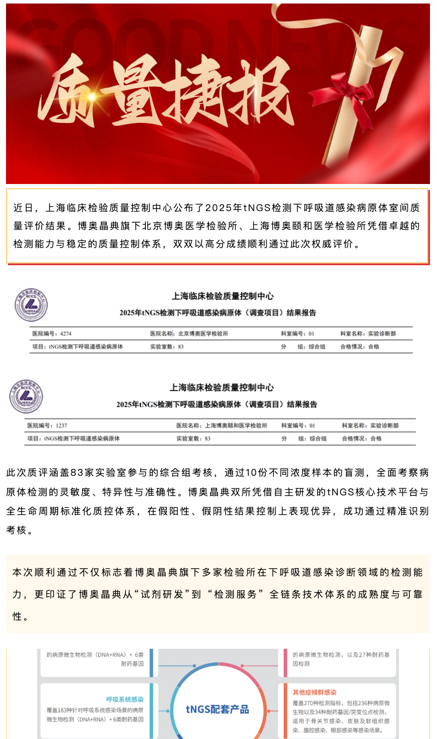 【質(zhì)量捷報】博奧晶典旗下多家檢驗所高分通過上海臨檢中心tNGS質(zhì)評