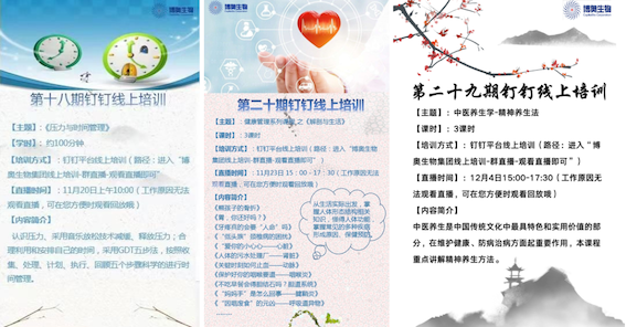 疫情期間,為確保員工身體健康、增強身體免疫力,博奧統(tǒng)一組織全體員工進行新冠核酸檢測,并在食堂餐廳熬制中藥代茶飲,清熱解毒、芳香辟穢、利濕避瘟。除此之外還開拓了線上培訓(xùn)方式,借助直播平臺為大家分享方方面面的健康管理知識。