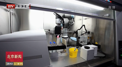配套的車(chē)載式全集成新冠檢測(cè)移動(dòng)實(shí)驗(yàn)室,接通220V民用電即可正常工作,同時(shí)它自身配備發(fā)電系統(tǒng)。采樣可以通過(guò)全自動(dòng)機(jī)械手和人工采樣兩種方式,病毒滅活、核酸分析都無(wú)需人工干預(yù)自動(dòng)完成。操作人員只需要做一個(gè)動(dòng)作,就是用移液槍將滅活后的樣本加入到芯片里封閉,放入全自動(dòng)微流控核酸分析儀中進(jìn)行檢測(cè),45分鐘便會(huì)自動(dòng)顯示結(jié)果。