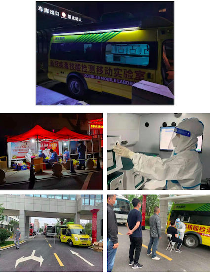 5月中旬,安徽省突發(fā)新冠疫情,為保障六安市核酸檢測(cè)按時(shí)完成,博奧晶典“輕騎兵”全集成新冠病毒核酸檢測(cè)移動(dòng)實(shí)驗(yàn)室連夜趕到六安。在六安市衛(wèi)健委的統(tǒng)一部署下有序開展當(dāng)?shù)鼐用裥鹿诓《镜暮怂釞z測(cè)工作。