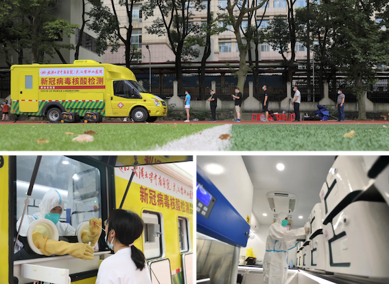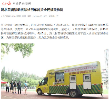 在武漢全員核酸檢測過程中,有這樣一抹亮色,馳騁在武漢抗疫前線,它就是博奧晶典新冠病毒核酸檢測移動實驗室。由清華大學、生物芯片北京國家工程研究中心和北京博奧晶典生物技術(shù)有限公司共同研發(fā)的新冠病毒核酸檢測移動實驗室是國內(nèi)首臺集采集和檢測為一體的移動式新冠病毒檢測實驗室,同時也是全國首款由輕型客車裝載的移動實驗室,被鐘南山院士命名為“輕騎兵”。