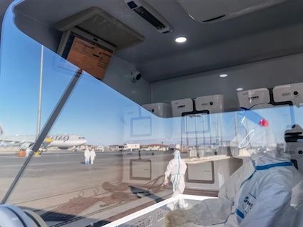 博奧晶典全集成新冠病毒核酸檢測移動實驗室亮相首都機場專機樓出口,為各國元首、政要提供實時落地核酸檢測