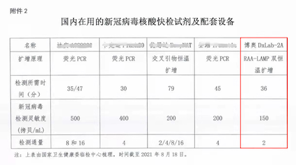 疫情下,為加強應對突發(fā)公共衛(wèi)生疫情常規(guī)防控救治能力,核酸檢測的速度和靈敏度是應對疫情和防控疫情建設中非常重要的一環(huán)。在2022年1月29日國務院聯(lián)防聯(lián)控機制召開新聞發(fā)布會上,對快速檢測又提出了新的要求,鼓勵發(fā)熱門診配備新冠核酸快檢試劑及配套設備,減少發(fā)熱患者留觀時間,降低交叉感染風險。在推薦的試劑和配套疫情中,博奧晶典全集成芯片實驗室系統(tǒng)檢測靈敏度為150拷貝/毫升,排在首位。