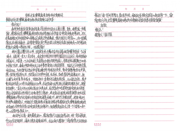 我縣諾爾鎮(zhèn)貧困殘疾戶學(xué)生xxx父親雙目失明,其本人先天性高度近視,家庭生活貧困。在我縣殘聯(lián)及本地企業(yè)內(nèi)蒙古哈維斯特農(nóng)牧科技有限公司對(duì)其家庭一對(duì)一幫扶的過程中,得到了貴公司的大力支持。2022年2月18日,xxx同學(xué)在貴公司進(jìn)行生物基因檢測(cè)期間,貴司減免了其全部檢測(cè)費(fèi)用,并且得到了貴司員工悉心的照顧和幫助。是你們熱情的問候以及無私的援助,讓xxx同學(xué)感受到社會(huì)大家庭的溫暖,讓她有戰(zhàn)勝疾病克服困難的決心和意志。貴司專業(yè)的服務(wù)和先進(jìn)的基因檢測(cè)技術(shù),對(duì)xxx同學(xué)及其家庭未來的生活有很大幫助。貴司的仁愛之心和社會(huì)責(zé)任感為和諧社會(huì)做出了優(yōu)秀的榜樣!