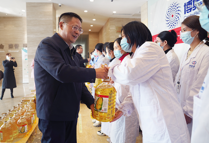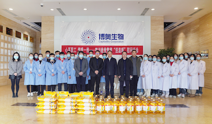 王誠董事長把慰問物品遞到大家手中,并送上誠摯的新春祝福。他對大家在過去一年里攻堅克難、勤奮工作,為博奧生物、四川能投創(chuàng)造的業(yè)績,特別是為抗擊疫情所做的貢獻給予充分肯定,勉勵大家在新的一年再接再厲、乘勢而上,再創(chuàng)新佳績。