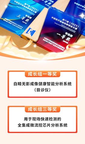 經(jīng)過(guò)初賽、復(fù)賽的層層選拔,來(lái)自全國(guó)的30余支優(yōu)勝團(tuán)隊(duì)從逾百個(gè)報(bào)名的優(yōu)質(zhì)創(chuàng)新項(xiàng)目中脫穎而出,入圍決賽。其中“白睛無(wú)影成像健康智能分析系統(tǒng)(目診儀)”和“用于現(xiàn)場(chǎng)快速檢測(cè)的全集成微流控芯片分析系統(tǒng)”成功突圍,榮獲成長(zhǎng)組一等獎(jiǎng)和三等獎(jiǎng)的殊榮。 此次獲獎(jiǎng)是對(duì)我們產(chǎn)品創(chuàng)新和研發(fā)實(shí)力的充分認(rèn)可及肯定。