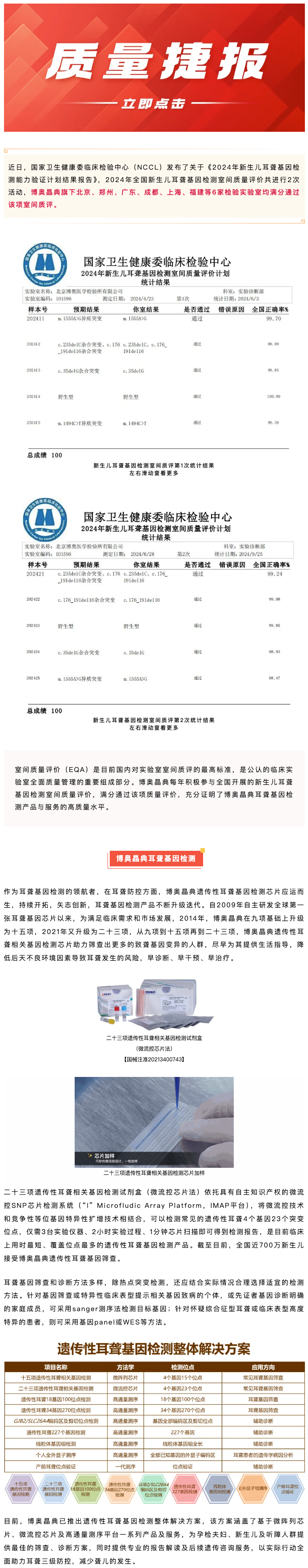捷報丨博奧晶典旗下多家檢驗所滿分通過2024年NCCL全國新生兒耳聾基因檢測室間質評