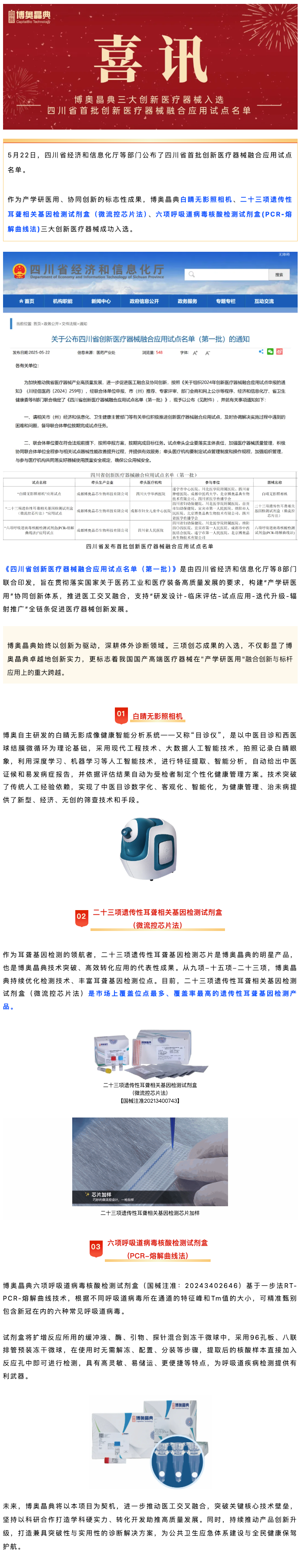 喜訊丨博奧晶典三大創(chuàng)新醫(yī)療器械入選四川省首批創(chuàng)新醫(yī)療器械融合應(yīng)用試點名單