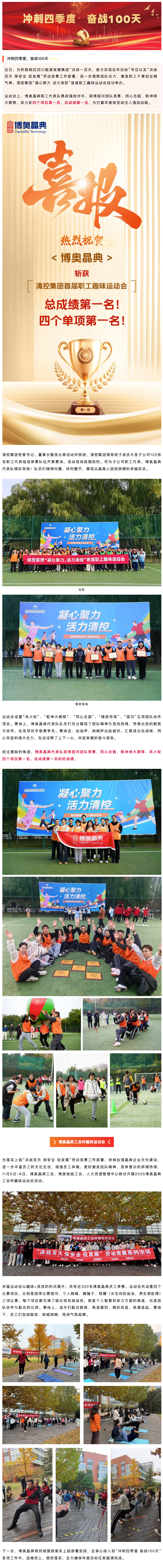 沖刺四季度 奮戰(zhàn)100天丨博奧晶典斬獲清控集團(tuán)首屆職工趣味運(yùn)動(dòng)會(huì)總成績第一名!